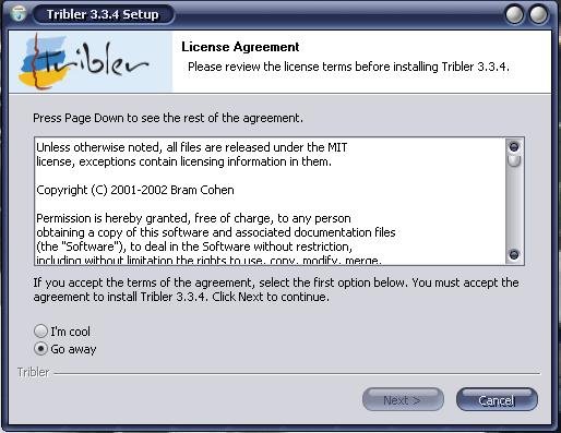 Si dall'inizio ti renderai conto di trovarti di fronte a un software programmato in modo molto originale. Ad esempio nel momento in cui occorre accettare la licenza invece della classica scelta: “I accept” or “Do Not Accept,” si legge “I'm Cool” e “Go Away.” . E' piacevole avere a che fare con programmatori con un buon senso dell'umorismo.