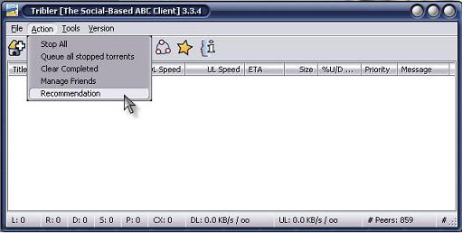 La prima cosa che rende Tribler diverso dagli altri client è la sua capacità integrata di social networking. Quando scarichi file solitamente incontri altri peer con i quali scambi dati al fine di ottenere una copia completa di quel file. Bene, Tribler usa un algoritmo di filtraggio collaborativo che confronta la storia dei tuoi download a quelli dei peer che incontri. Se un peer ha un torrent nella sua cronologia di download che non hai ancora scaricato ti viene raccomandato. Il valore di raccomandazione assegnato ad un torrent e mostrato nella finestra RECOMENDATION dipende da quant'è simile la cronologia di download del peer alla tua. Così più alto è questo valore più è probabile che quel contenuto ti piaccia. Questa funzione può essere disabilitata e versioni successive permetteranno di filtrare ulteriormente le raccomandazioni.
