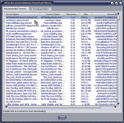 Se trovi qualcosa che ti piace davvero, fai doppio click sull'elenco ed il file verrà scaricato da Tribler. E' semplicissimo. E' un passo avanti davvero interessante perché ti permette di scaricare cose delle quali non hai mai sentito parlare e che potrebbero piacerti. La differenza col vecchio modello è evidente. Nella maggior parte dei client P2P quello che trovi si basa su ricerche personali.