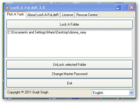 LocK-A-FoLdeR è un programmino gratuito molto leggero e semplice da usare nonostante non sia stato ancora tradotto in italiano (anzi, se qualcuno vuole tradurlo si accomodi, non è difficile tecnicamente).