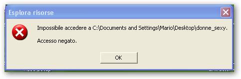 Ecco il messaggio che apparirà sullo schermo se tenterete di aprire e visualizzare il contenuto di una cartella protetta da Lock-A-Folder. Per farla tornare normale vi basterà riaprire il vostro programmino, inserire la master password, ed accedere al pannello. Selezionare le cartelle protette e cliccare “Unlock Selected Folder“. Tutto tornerà come prima, con il libero accesso ai dati contenuti in esse.
